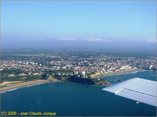approximately 8 NM south of Biarritz and about 5 NM north of the French/Spanish border. With information extracted from this picture and using Google Earth as a measuring tool I could deterimine that Jean Claude was flying at an approximate position of 43°23'13.3"N 1°38'19.8"W, which is just east of the motorway that runs to the south-east of the city.