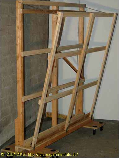 One side can be tilted to get access to individual plywood sheets stored in my 'plywood organizer'. It accommodates sheets of up to 1.55x1.55m (appr. 5'x5').
