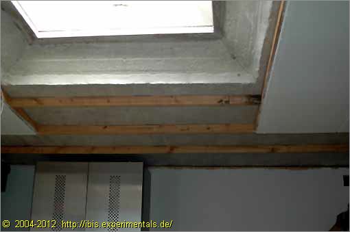 The ceiling was treated similarly, except for the covering. Here I substituted the particle board for a more cost effective alternative.