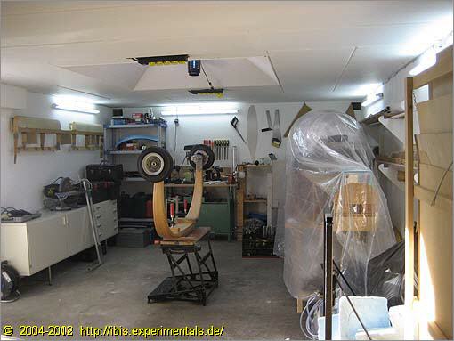 The former double garage (10m deep) was divided onto a workshop and storage space by inserting a new wall. This new wall contains a removable panel that is wide enough to roll out the IBIS fuselage on its own gear.